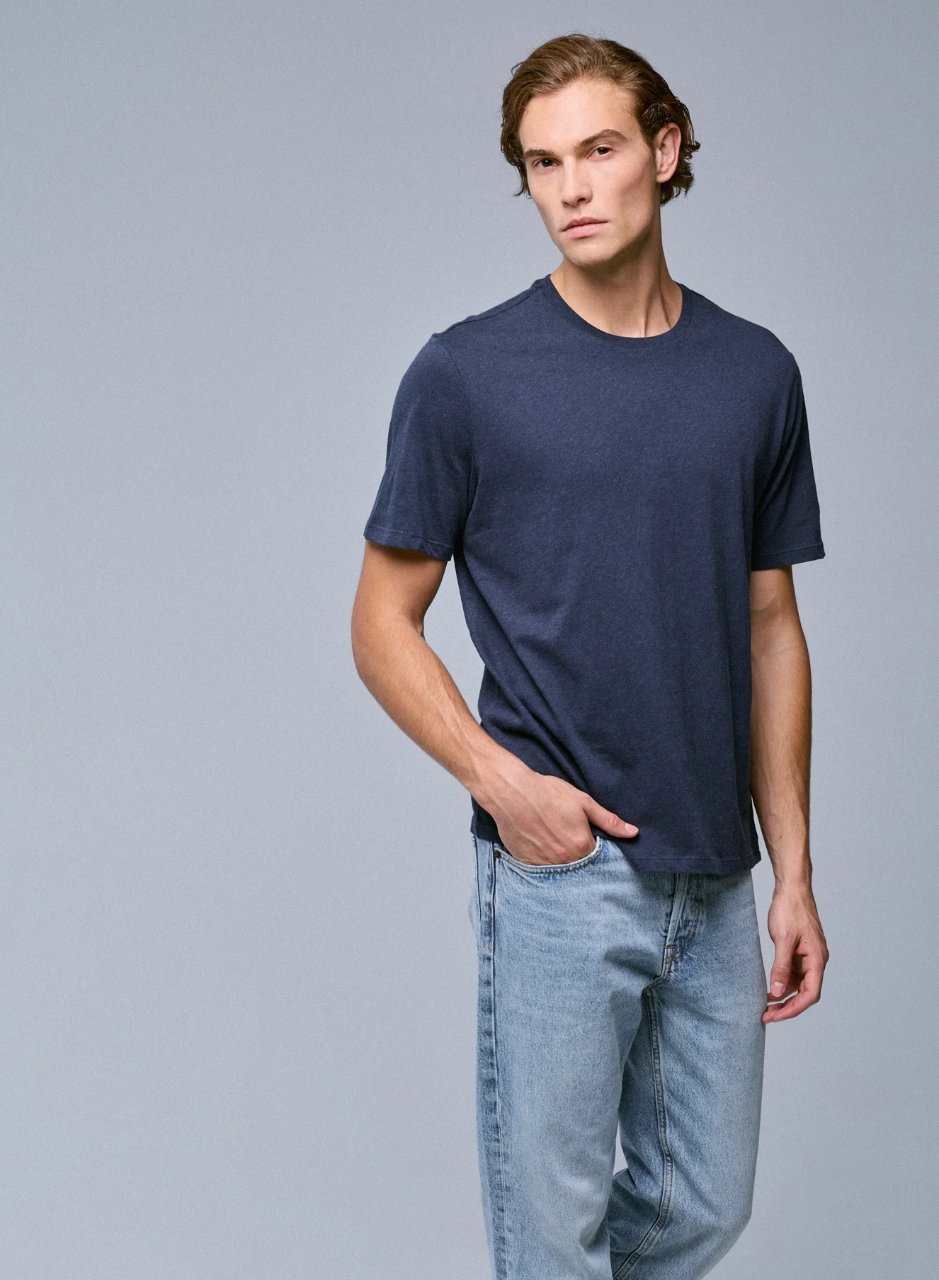 Azul Camiseta Cuello Redondo Mangas Cortas Algodón Orgánico está confeccionado/a con un material natural, suave y cómodo, ideal para el uso diario.